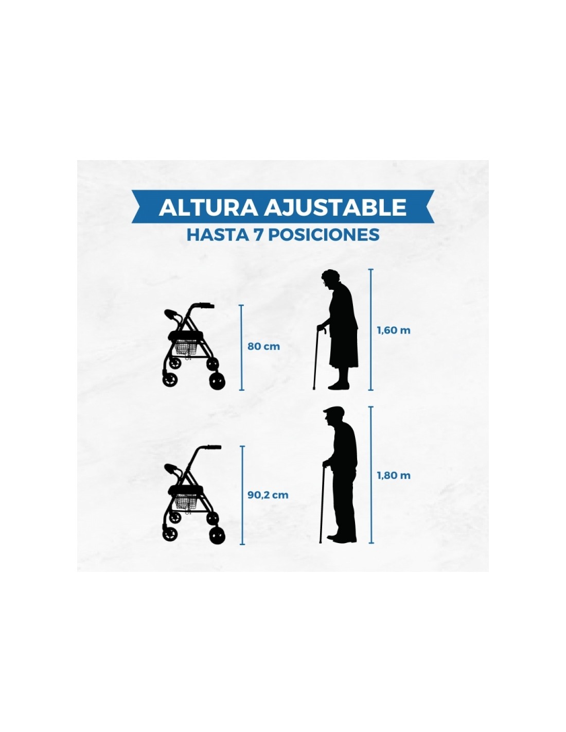4 PRODUCTOS EN 1: no es solo un andador para ancianos, sus prestaciones le hacen servir de apoyo como bastón, tiene un cómodo asiento con respaldo y dispone de una práctica cesta de compras.