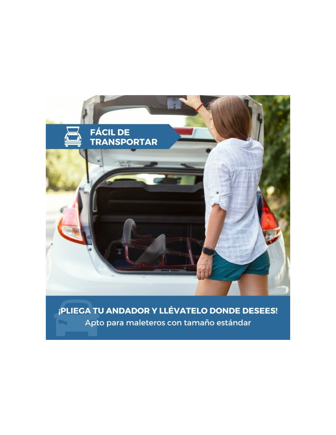 PUERTAS Y MALETERO: Este andador tiene un ancho total de 63,3 cm, por lo que puede pasar por puertas de ancho estándar de 72.5 cm. Además como este andador plegado mide sólo 47 cm, se puede transportar en el maletero de un vehículo tipo Volkswagen Polo. Asegúrese de las medidas de sus puertas y vehículo para comprobar que le viene bien.