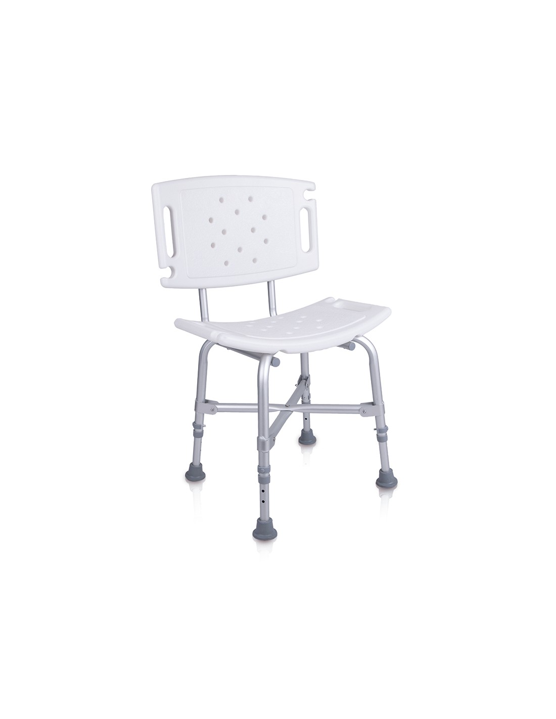 La 9120 es una silla de ducha con respaldo. Con dos agarres laterales tanto en el respaldo como en el asiento para facilitar el posicionamiento del usuario. Proporciona al usuario un máximo confort y seguridad a la hora de ducharse. Las conteras antideslizantes la convierten en una silla segura. El ancho total es de 51 cm, la profundidad es de 49,5 cm y el alto es regulable en 5 niveles de 75 a 85 cm. El ancho del asiento es de 51 cm y la profundidad de 30 cm. La distancia del asiento al suelo es de 35 a 45 cm. Disponible la versión bariátrica que soporta un peso máximo de 136 kg. Fabricado en plástico y aluminio.