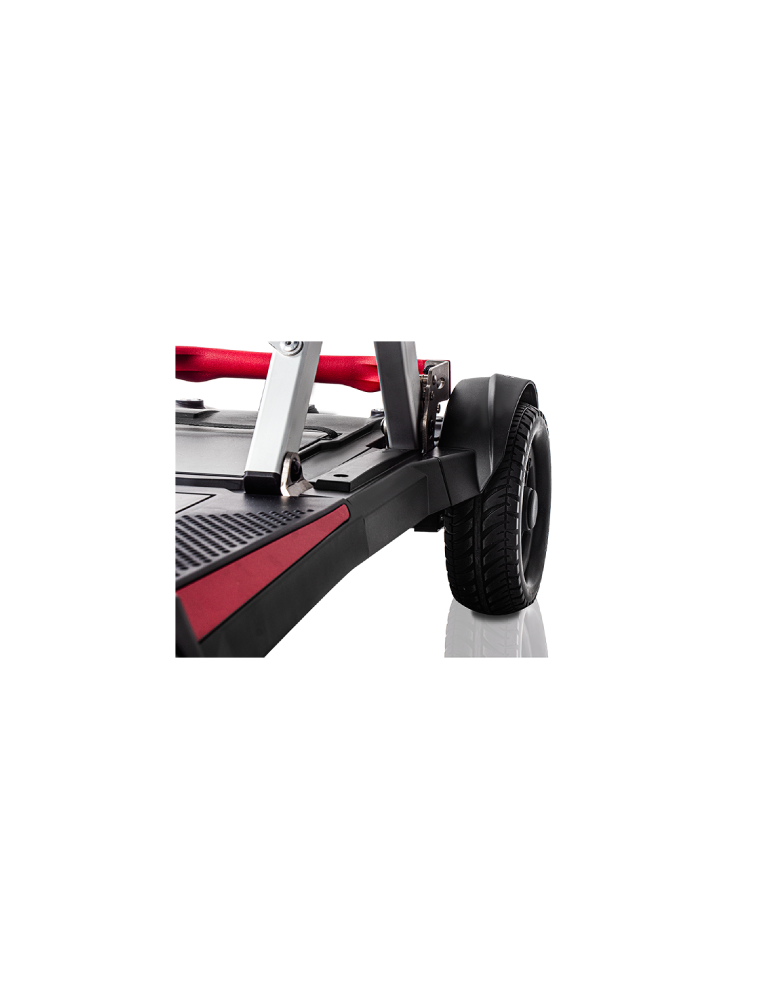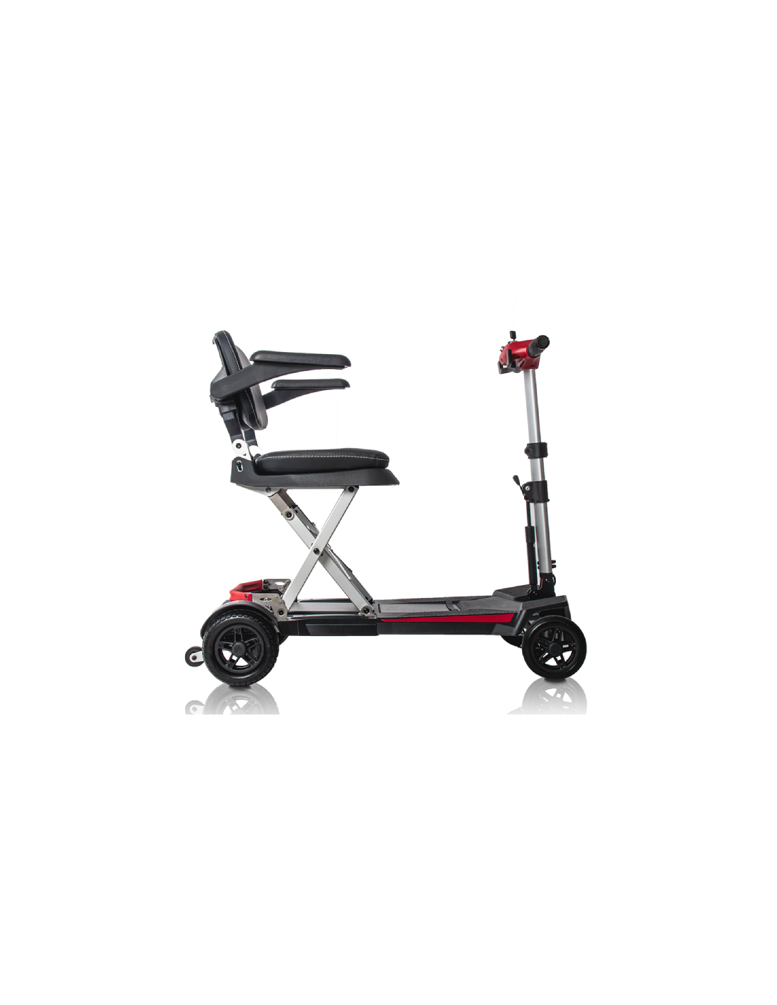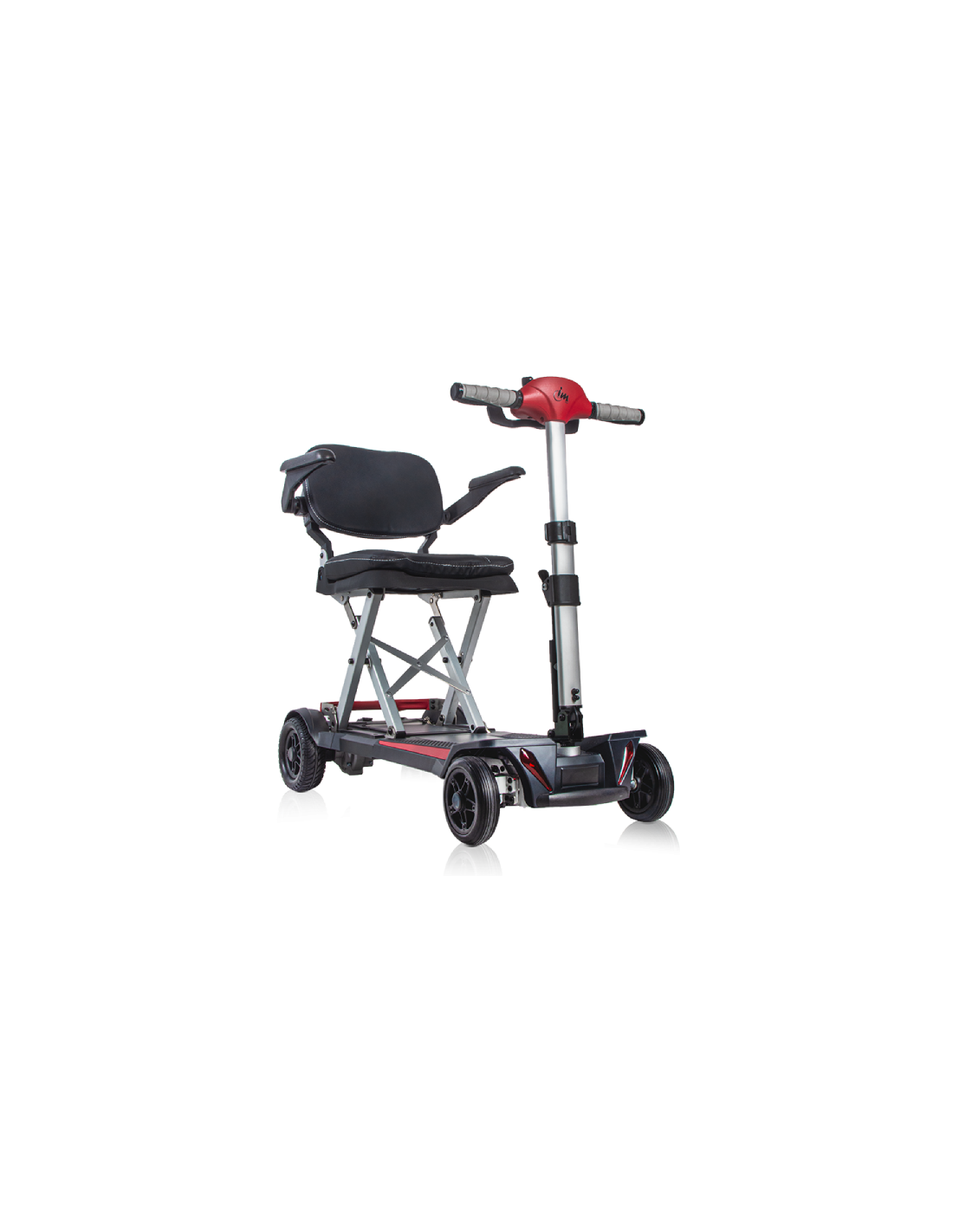 El scooter Formentera es fácilmente reconocible por su chasis compacto y ligero.Con una profundidad de 97 cm y un ancho total de 46 cm sin los reposabrazos, este scooter es extremadamente compacto, lo que facilita la conducción en espacios reducidos, el paso por puertas y la entrada en ascensores pequeños.Tiene un peso de solo 21 kg sin la batería, el scooter Formentera es superligero, permitiendo manejarlo con facilidad y subirlo al maletero del coche sin esfuerzo.Además, su asiento y mástil son plegables manualmente, transformándolo en un scooter del tamaño de una maleta, perfecto para guardar y transportar.