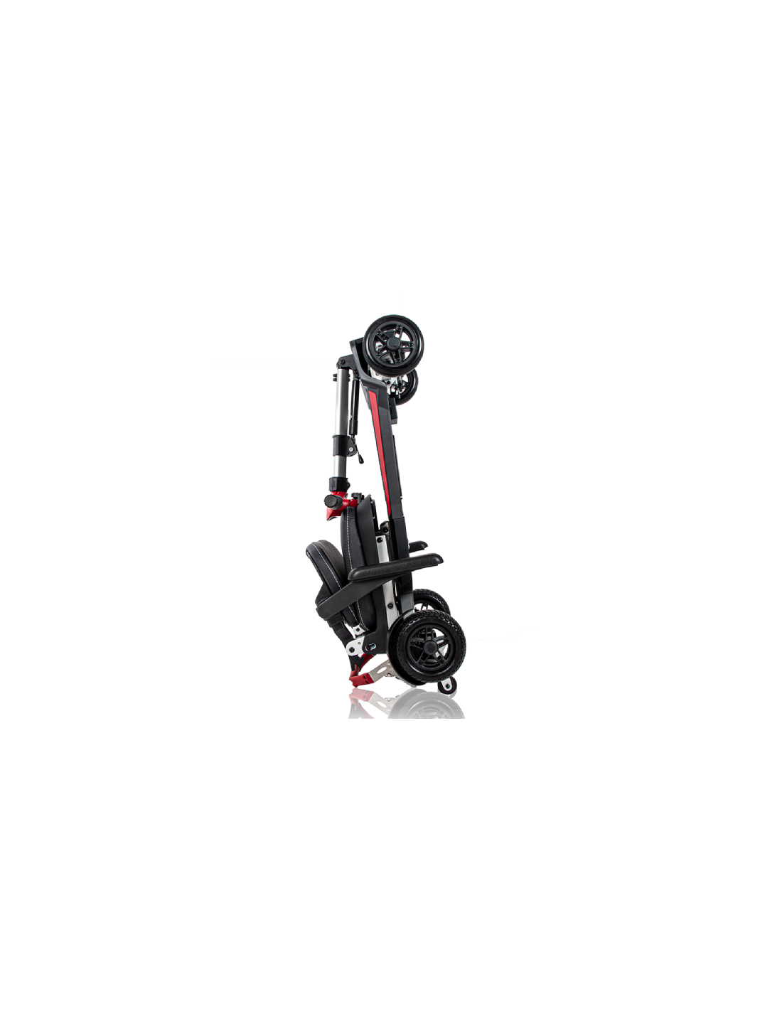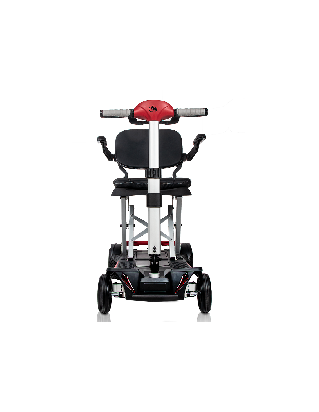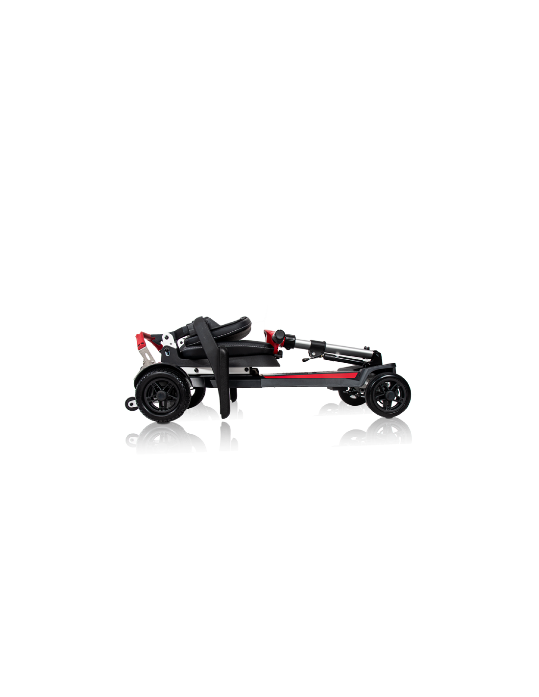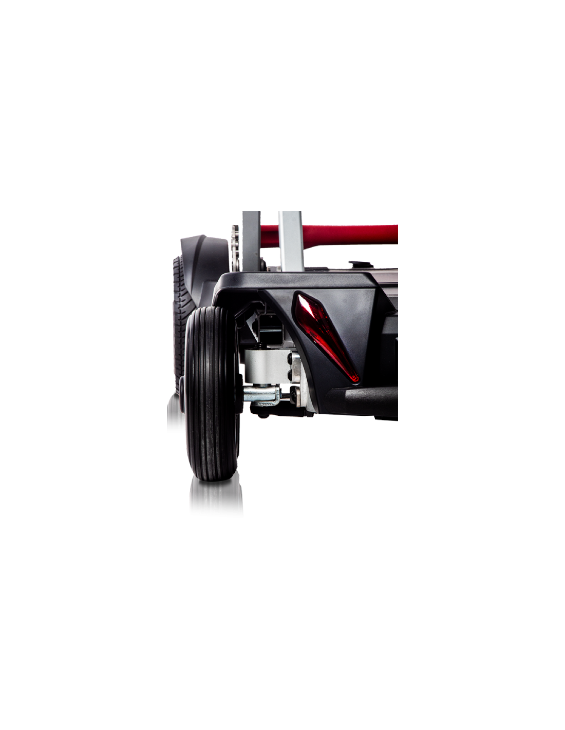 El scooter Formentera es fácilmente reconocible por su chasis compacto y ligero.Con una profundidad de 97 cm y un ancho total de 46 cm sin los reposabrazos, este scooter es extremadamente compacto, lo que facilita la conducción en espacios reducidos, el paso por puertas y la entrada en ascensores pequeños.Tiene un peso de solo 21 kg sin la batería, el scooter Formentera es superligero, permitiendo manejarlo con facilidad y subirlo al maletero del coche sin esfuerzo.Además, su asiento y mástil son plegables manualmente, transformándolo en un scooter del tamaño de una maleta, perfecto para guardar y transportar.